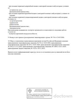 В качестве терапевта занимается лечением следующих заболеваний: острые респираторные инфекции, бронхиты, пневмонии, заболевания почек, заболевания желудочно-кишечного тракта, заболевания сердечно-сосудистой... читать далее