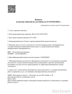 Мы очень довольны! Толковый врач. Наталья Сергеевна всё нам объяснила и дала направление в лабораторию на анализы. Приехала доктор вовремя и общалась достаточно деликатно. Этого специалиста нашла на сайте СберЗдоровье. Порекомендую её остальным своим знакомым!